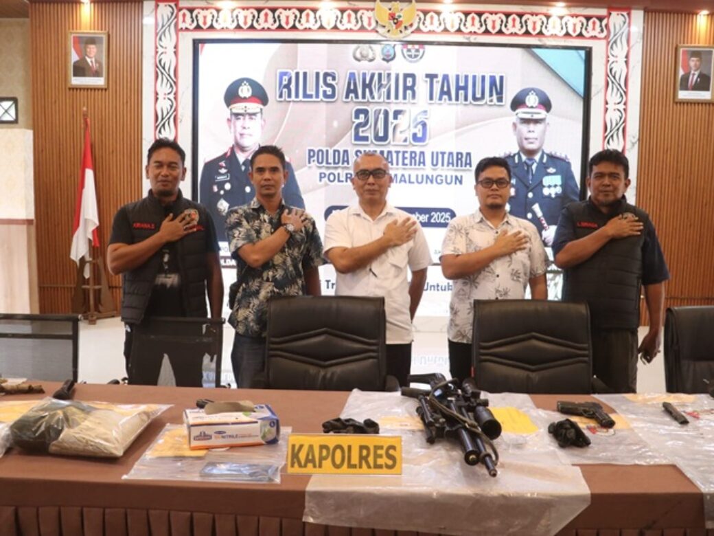 Simalungun, Beritake.com – Ketegasan Tim Jatanras Sat Reskrim Polres Simalungun kembali dibuktikan. Dalam Rilis Akhir Tahun 2025 yang digelar Selasa (30/12/2025) di Aula Andar Siahaan, Mako Polres Simalungun, kepolisian resmi menetapkan seorang Aparatur Sipil Negara (ASN) berinisial Jan Sabarmen Saragih (53) sebagai tersangka kasus penembakan terhadap empat warga di Perumahan Rorinata.